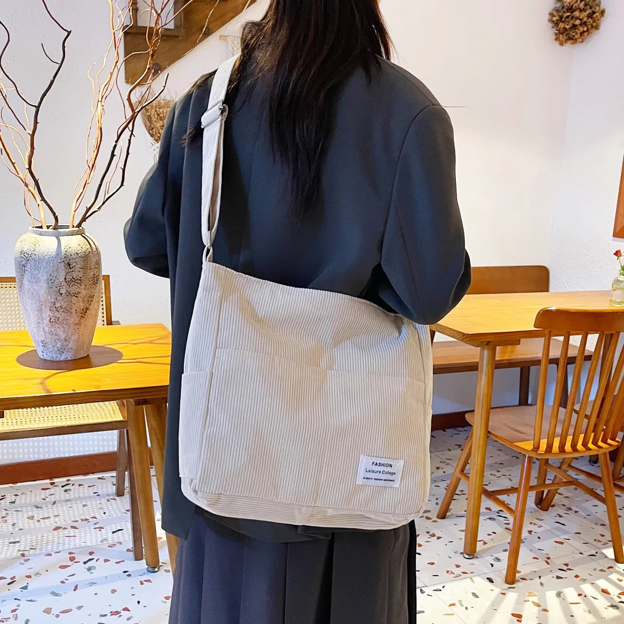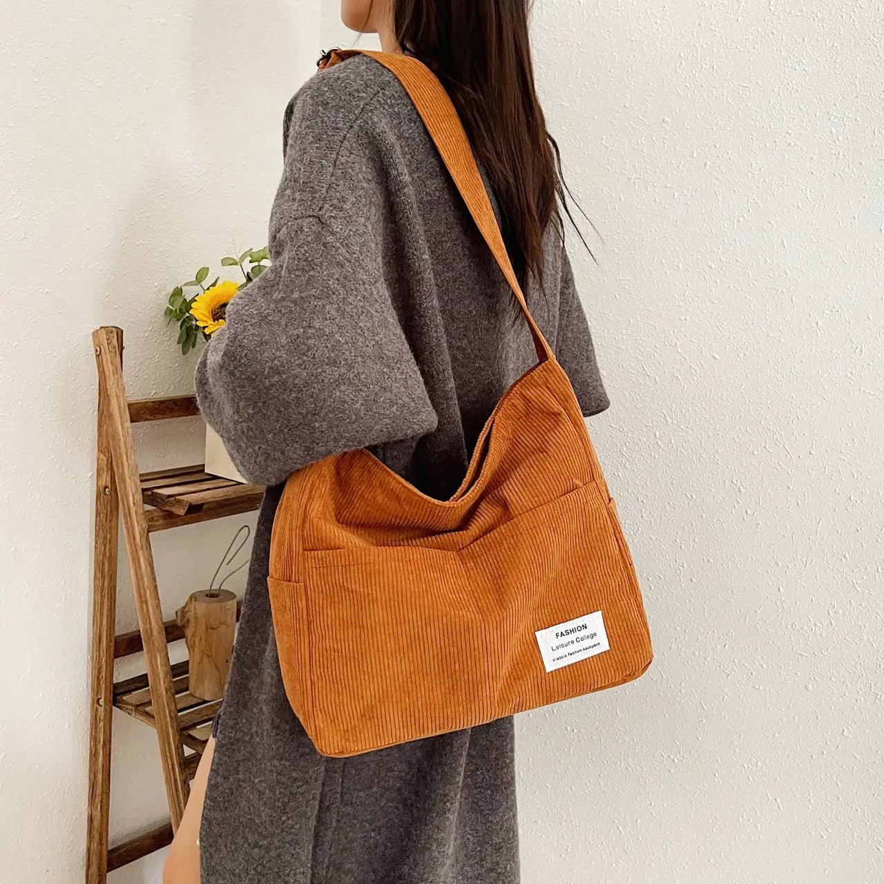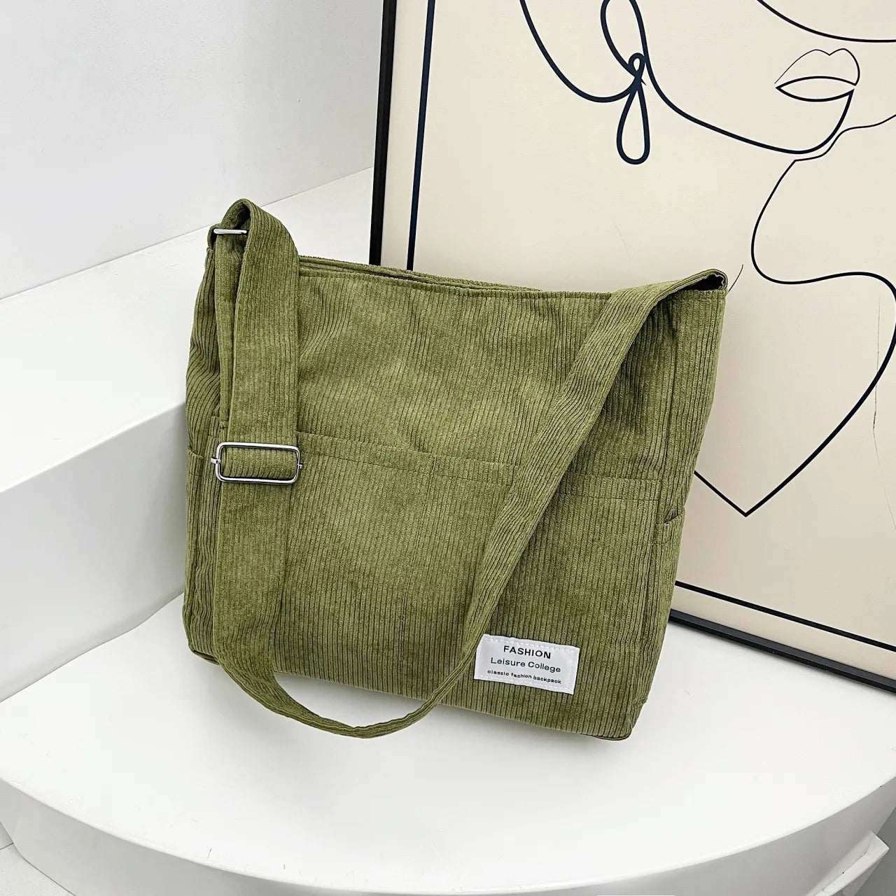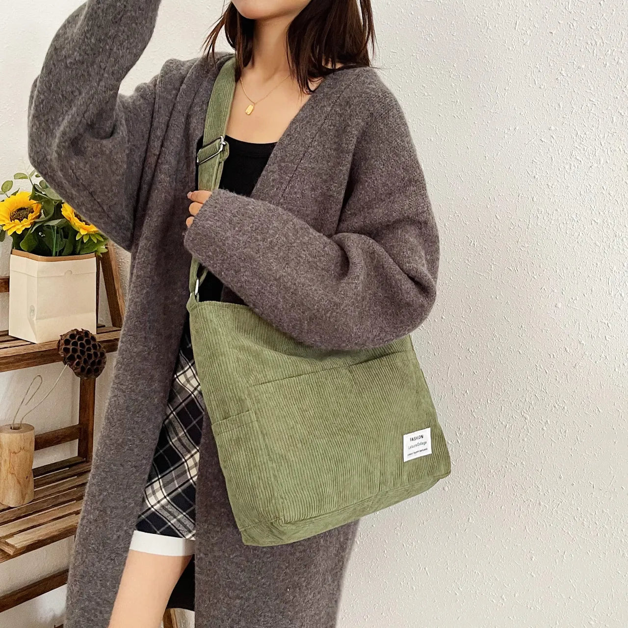 Corduroy Crossbody Messenger Bag