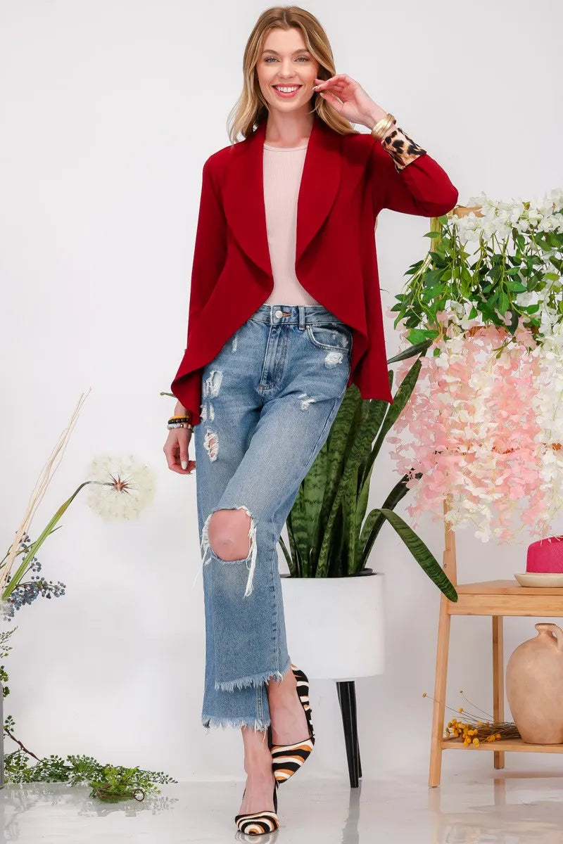 Celeste Full Size Rolled Leopard Cuff Open Front Blazer