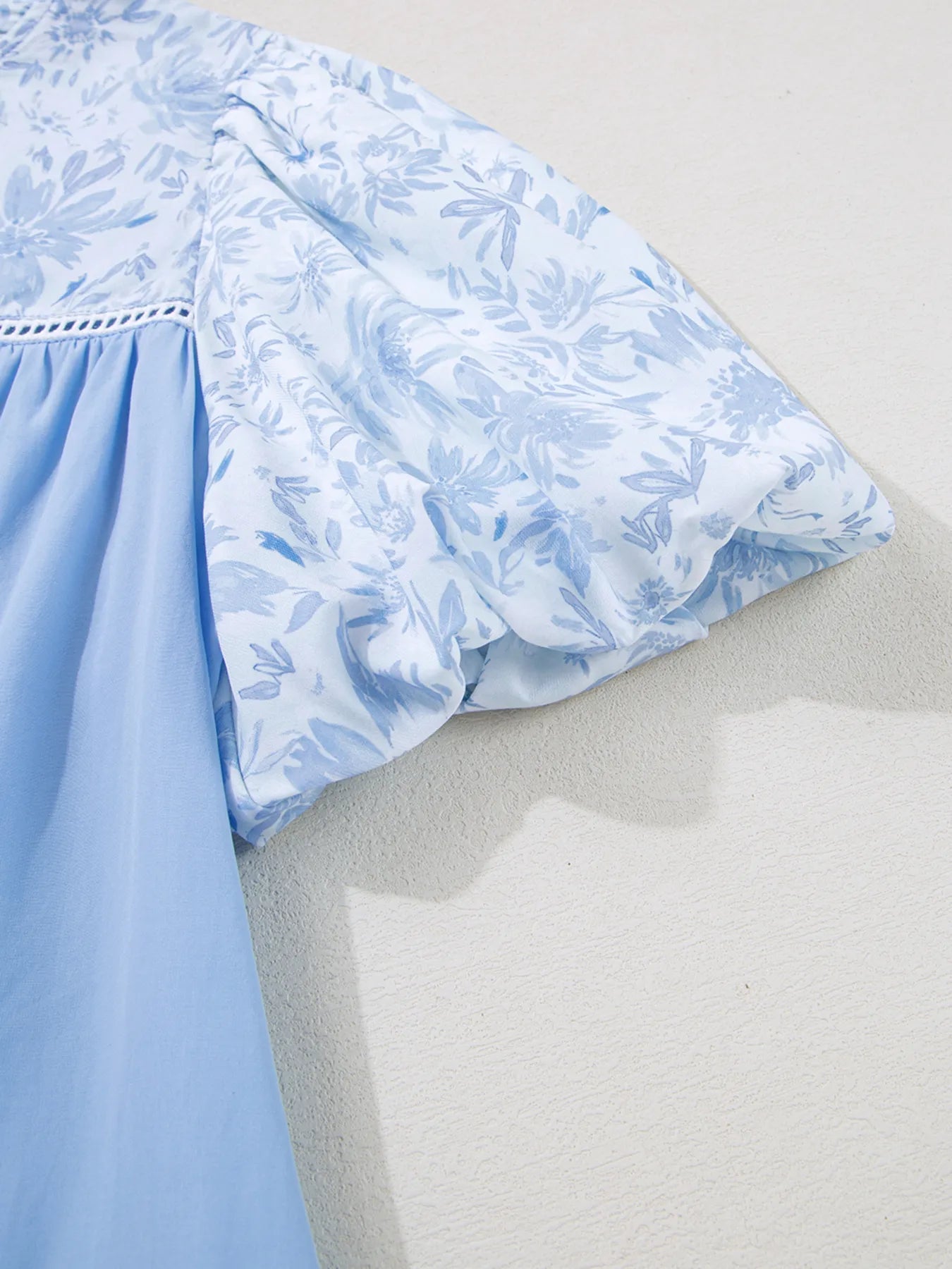 Lace Insert Floral Puff Sleeve Patchwork Loose Blouse
