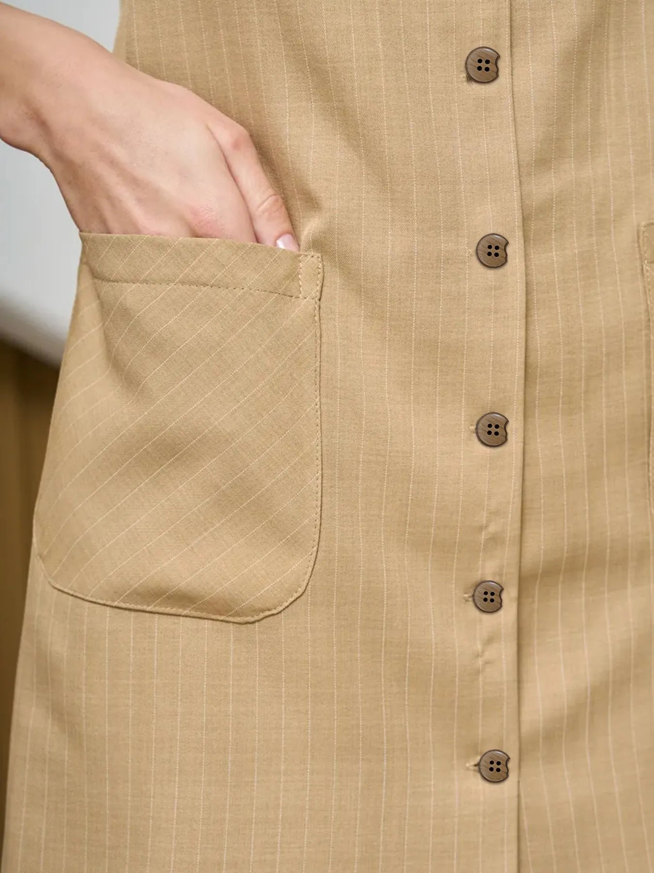 Button-Front Sleeveless Mini Dress with Tie Waist