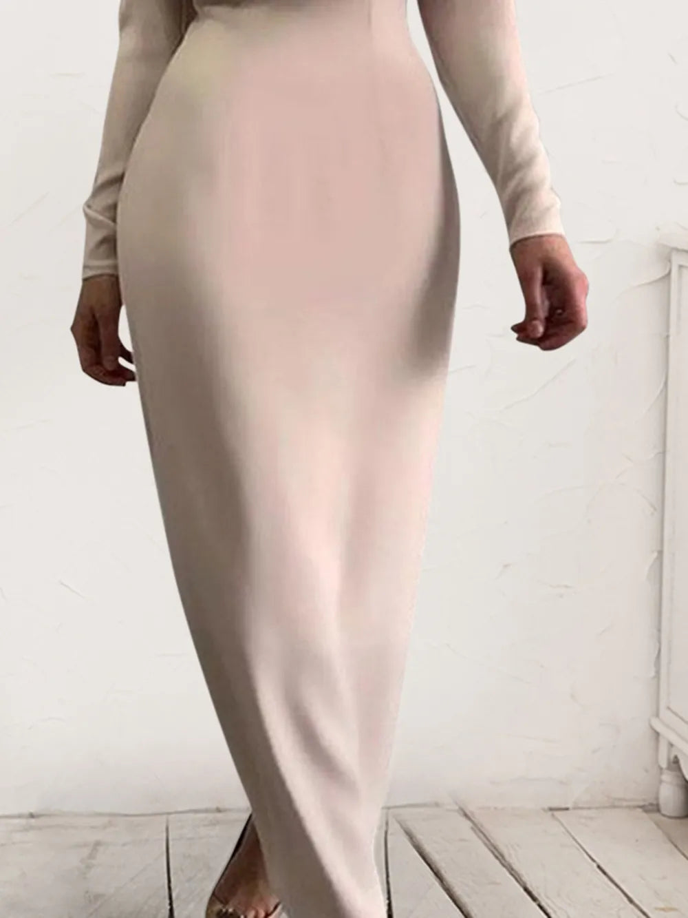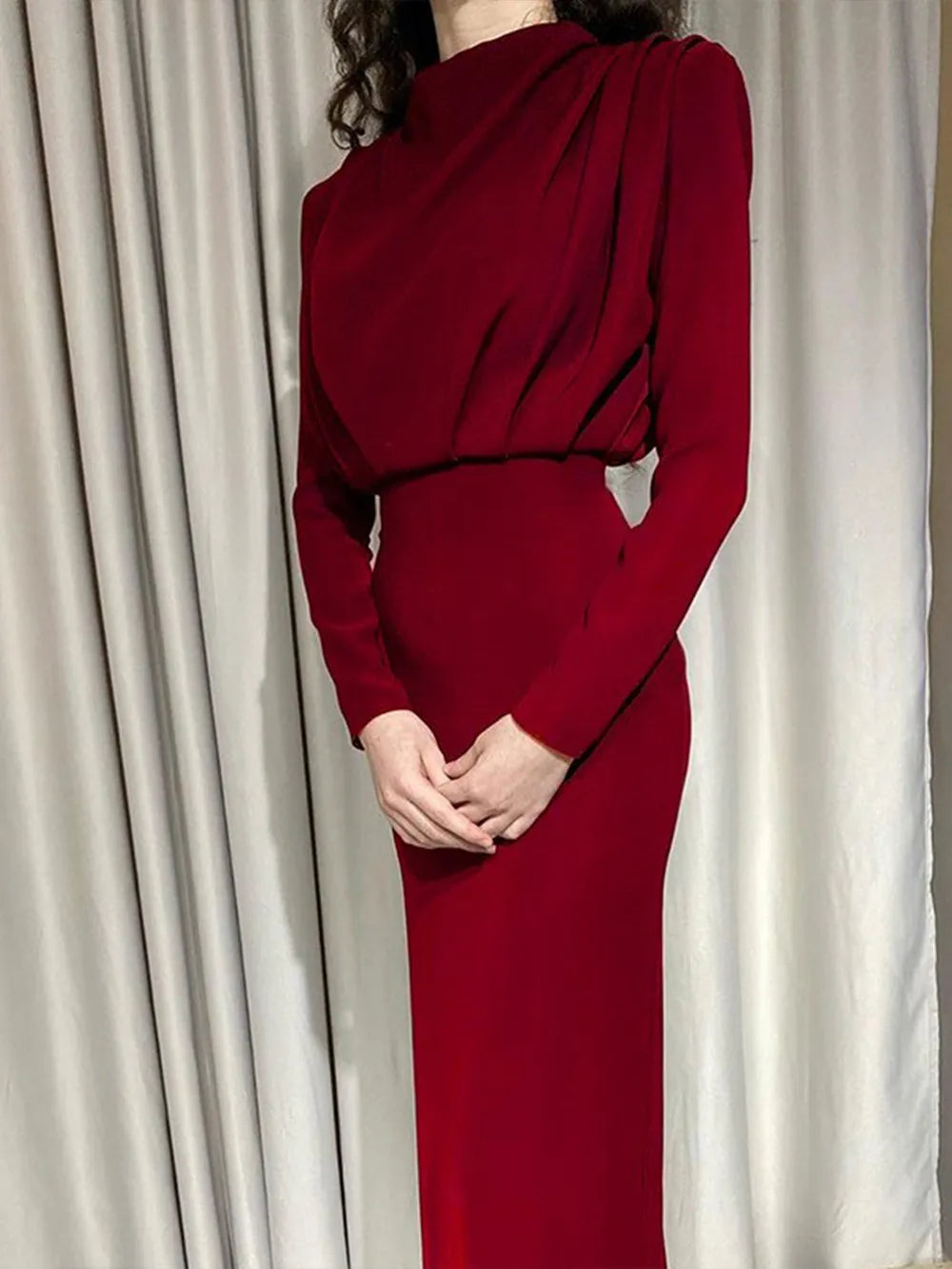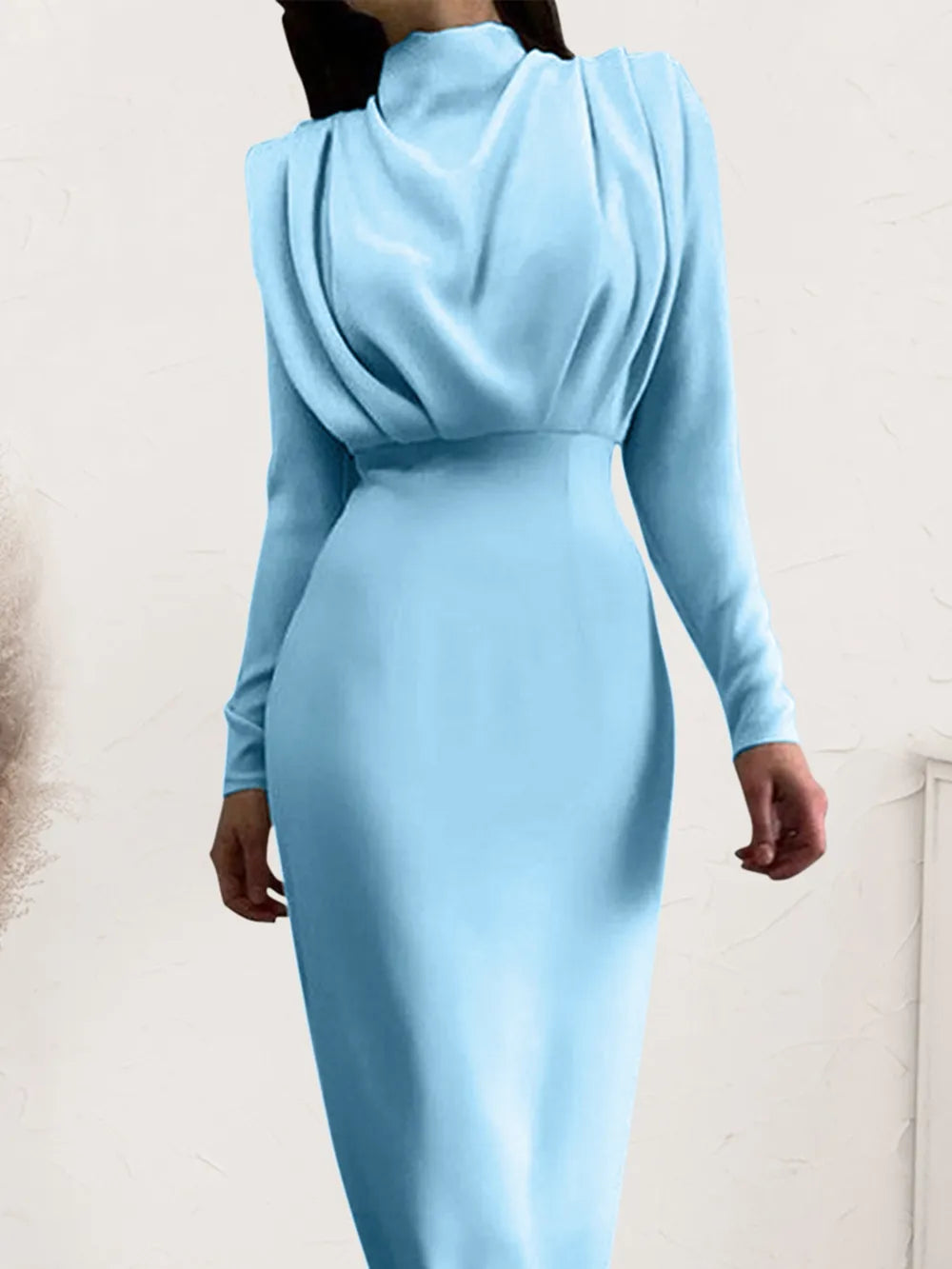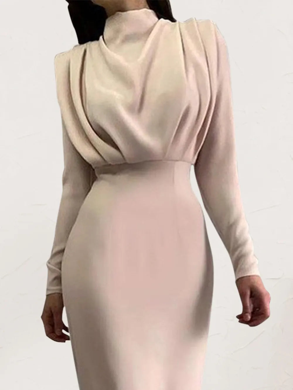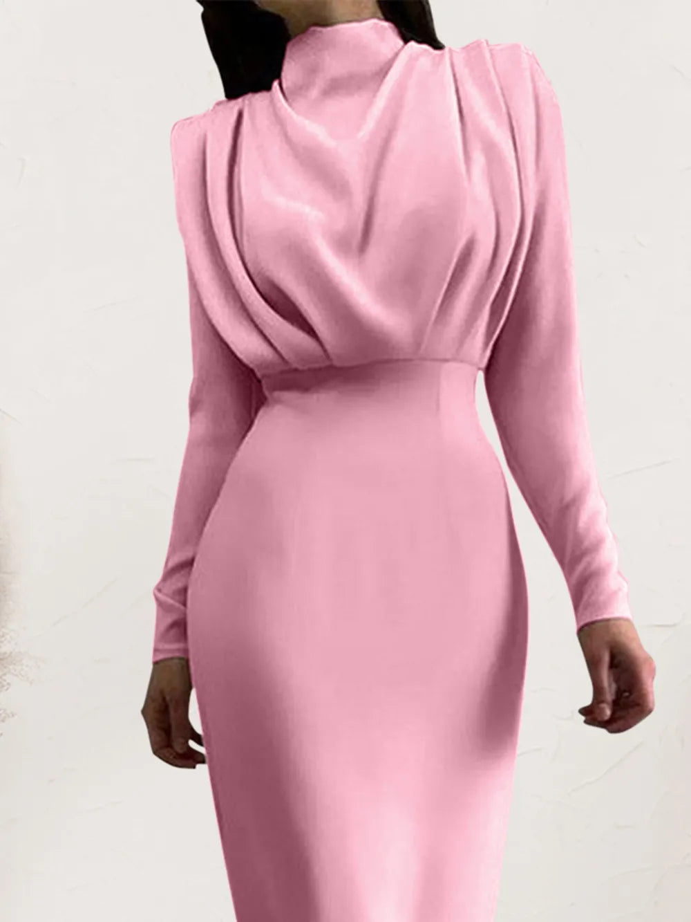Ruched Turtleneck Long Sleeve Dress