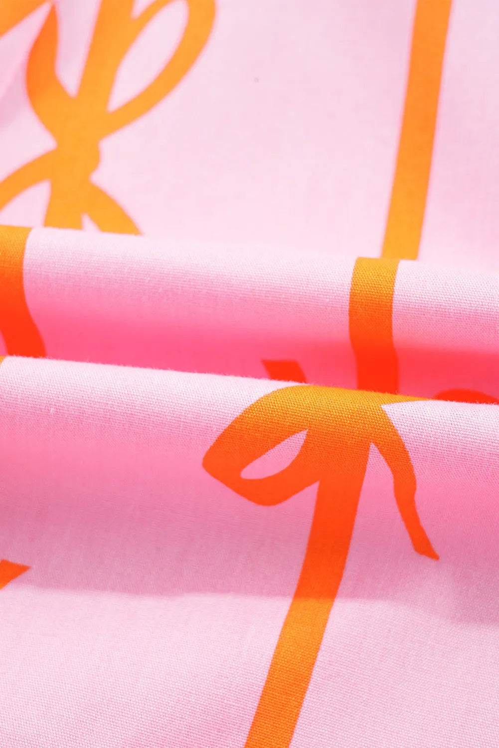 Ruffled Bow Printed Three-Quarter Sleeve Shirt Dress