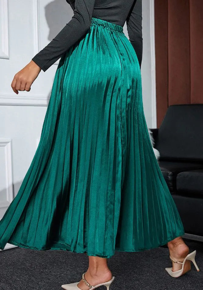 Elastic Waist Pleated Midi Skirt