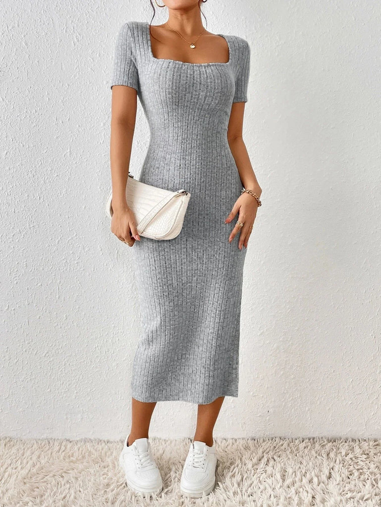 Women Spring Summer Style Knitted Dress Lady Casual Short Sleeve - XS / gray is backordered and will ship as soon as it is back in stock.